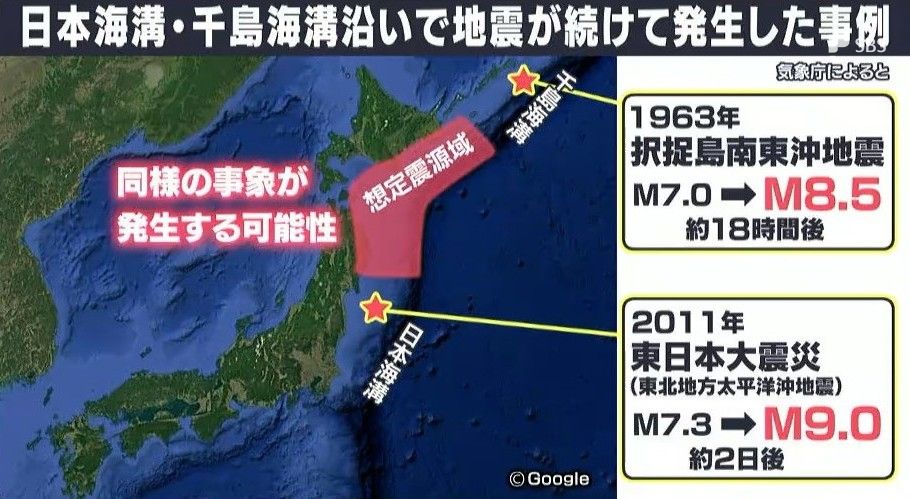 「まさに2011年、東日本大震災のときにマグニチュード9の地震が起きる2日前に、その少し離れたところでマグニチュード7.3の地震が起きています。同じようなことが1963年の択捉島南東沖地震でも起きていますので、同じようなことがひょっとしたらあるかもしれないということで、今回、その情報(北海道・三陸沖後発地震注意情報)が出されたという形になるかと思います」