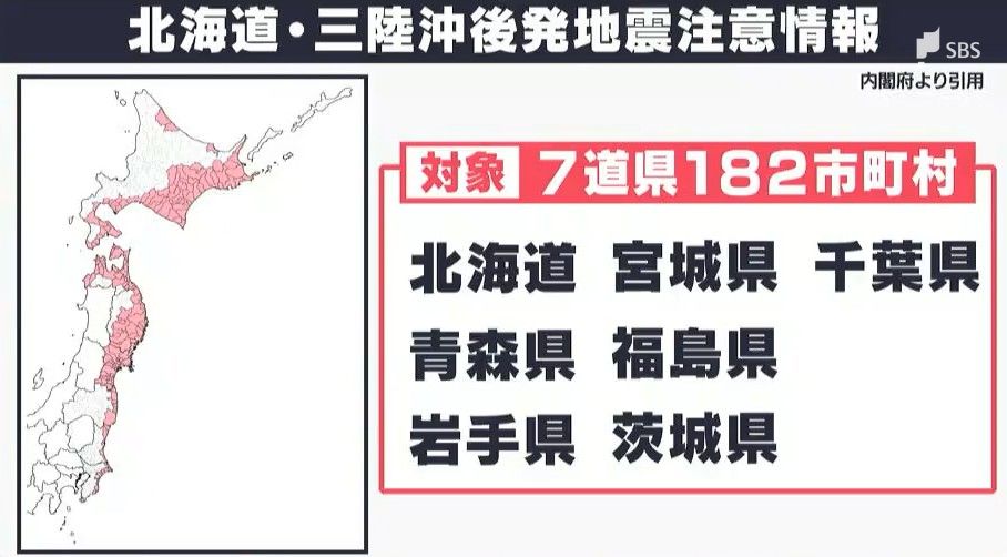 「後発地震への注意を促す情報を発信する基準を満たしましたことから気象庁は本日2時に北海道・三陸沖後発地震注意情報を発表いたしました」