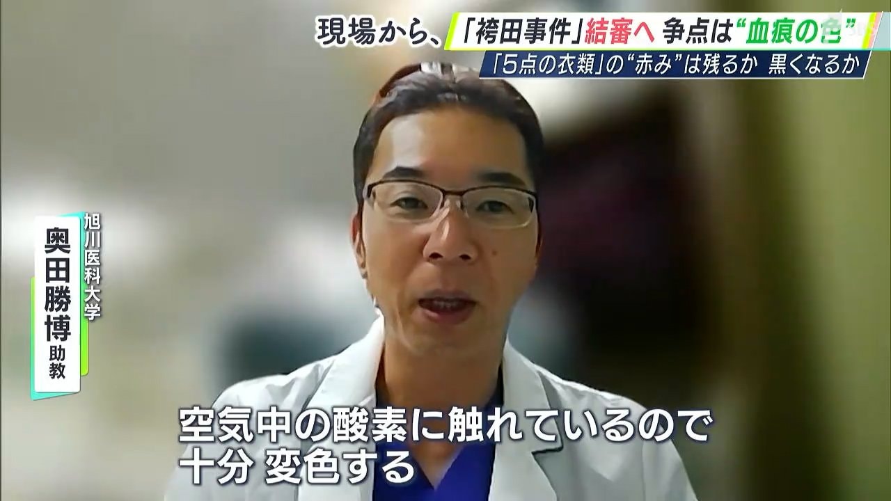 裁判では、犯行着衣とされる衣類に付着していた血痕の「色」をめぐり、弁護側、検察側の主張が対立しています。