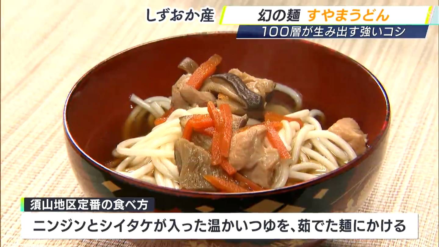 静岡県裾野市の北部に位置する須山地区。ここに地元の人が愛してやまない“幻のうどん”があります。今回のしずおか産は、裾野市須山地区で作られる「すやまうどん」。一番の特徴は、もっちりとしたコシの強さです。