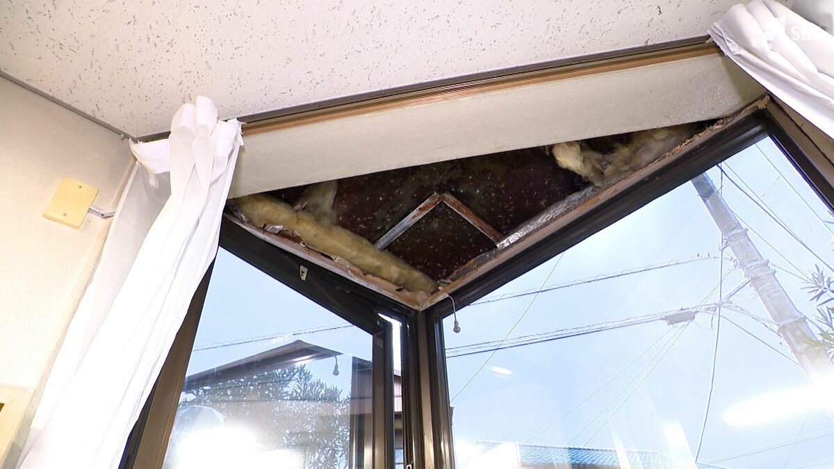 「大体6,7年ほどぐらい前に、雨漏りによって天井がちょっと落ちてきてしまった。雨漏りがひどいので天井を剥がしてしまっている状態」