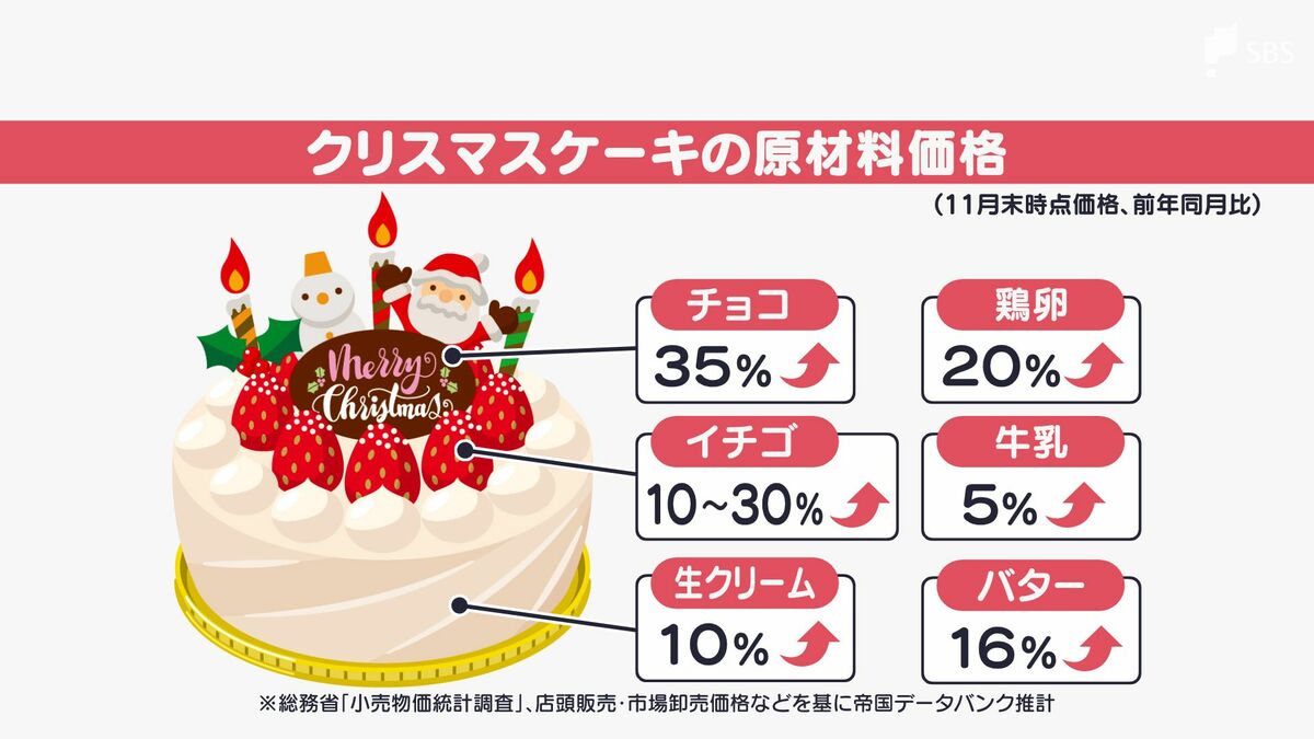 背景にあるのは原材料の高騰です。ケーキ作りに必要な牛乳や生クリーム、鶏卵、バターなどが軒並み値上がり。