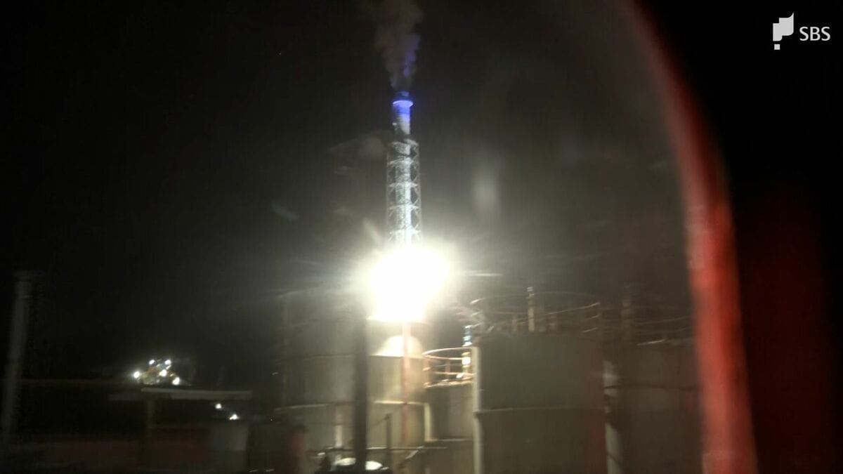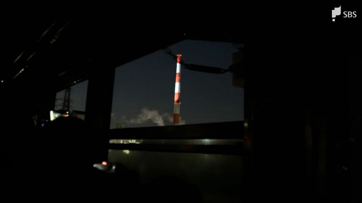 乗客は、暗闇に浮かび上がる煙突や工場の姿を楽しんでいました。