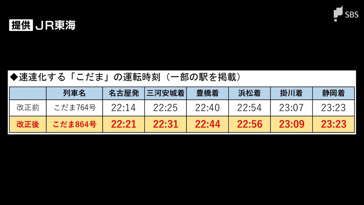 2026年春のJR東海のダイヤ改正で、東海道新幹線の「こだま」の一部列車が速達化され、所要時間が短縮されます。静岡駅行きの上りの最終便「こだま」は名古屋駅~静岡駅間で所要時間が7分短くなり、名古屋や大阪などでの滞在時間がより長く確保できるようになるということです。