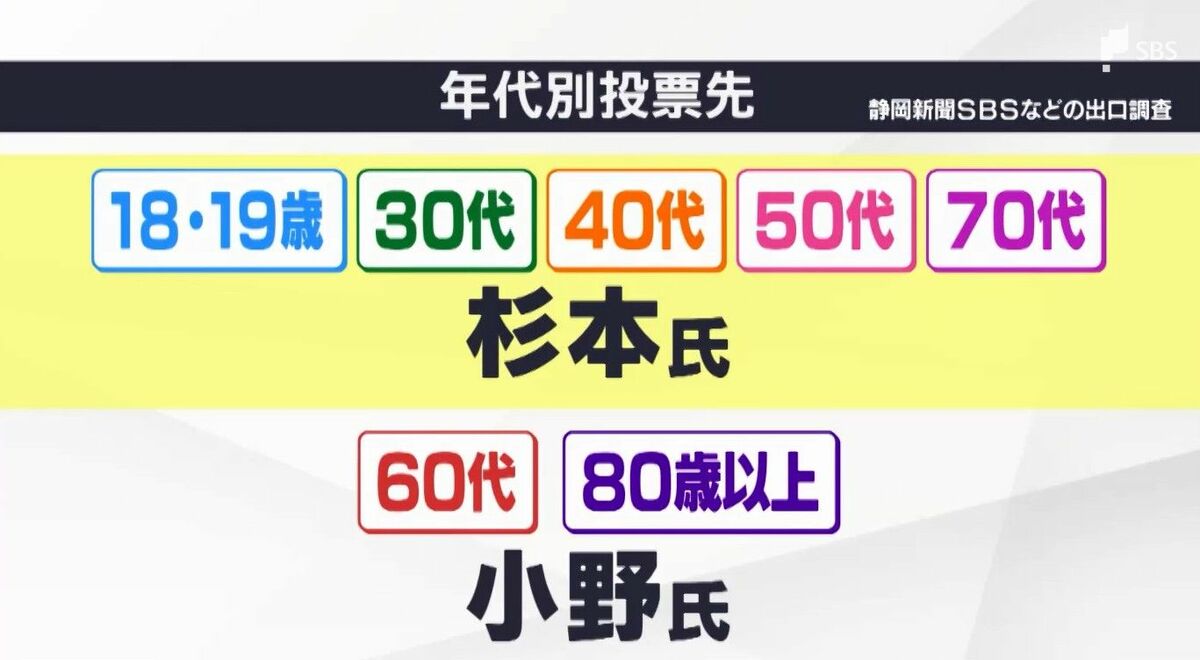 現役世代の支持集めた杉本氏、高齢層は小野氏