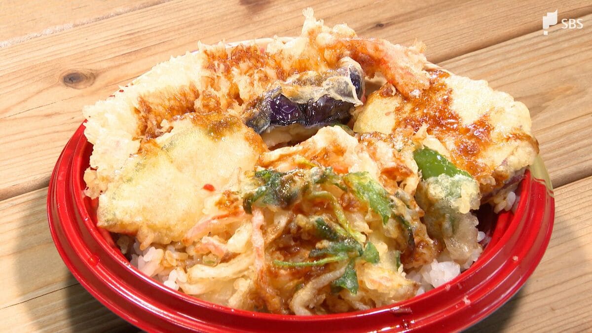 エビや野菜がたっぷり乗った天丼は458円、ボリュームたっぷりのお弁当は398円。甘辛く煮たサバの味噌煮も人気です。