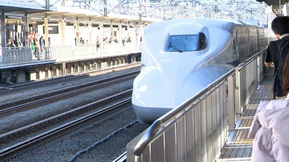 JR静岡駅の新幹線ホームでは、朝から大きな荷物を抱えた家族連れなどが多くみられました。