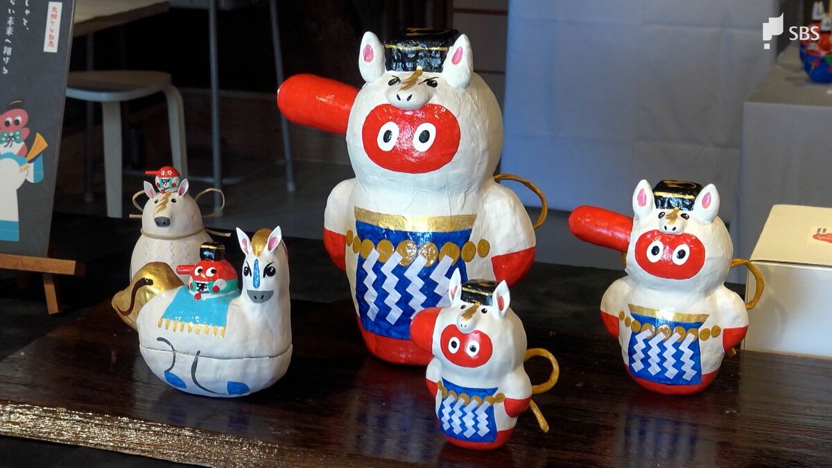 2026年の干支「午」にあわせ、午の張り子なども並びます。