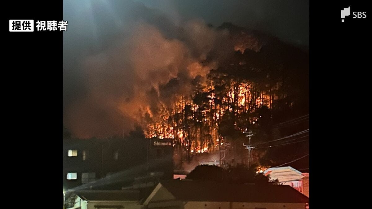 【速報】住宅火災から山火事に 町のシンボル「河津桜原木」付近の山が燃える=静岡・河津町