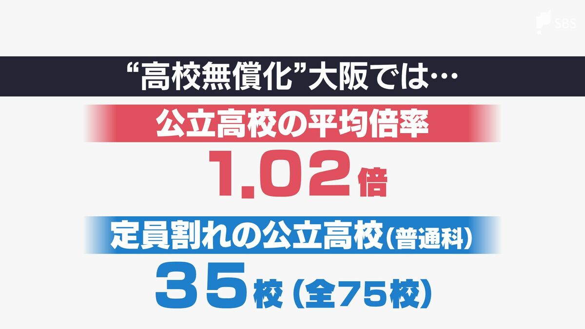 先行して「高校無償化」に舵を切った大阪府では、私立高校の人気が上昇した結果、公立高校の志願者平均倍率が1.02倍と過去最低に。