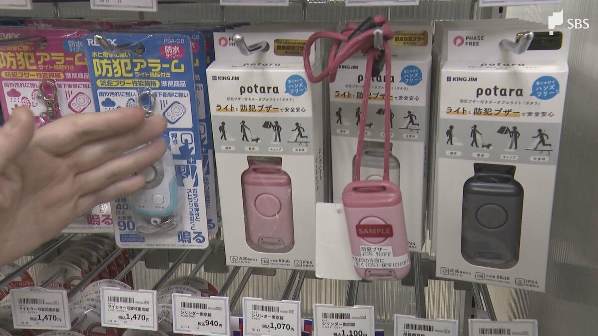 「こちらが防犯グッズになりまして、その中でも子どもに特に売れているのがこちらの防犯ブザーになります。実際にちょっと使ってみます。こちらの商品の場合はここを引いていただくと(防犯ブザーの音)こういうふうに非常にけたたましい音が鳴ります。それによって周囲の人に自分の危険を知らせてくれる、そういうグッズです」