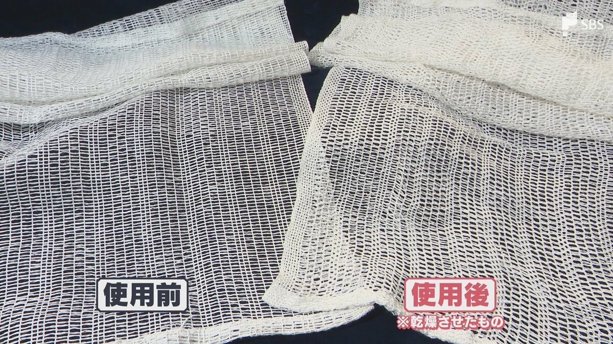 さらに優しく感じるのは2回目から。一度水を吸収すると糸が膨張するため、肌触りがより滑らかになります。