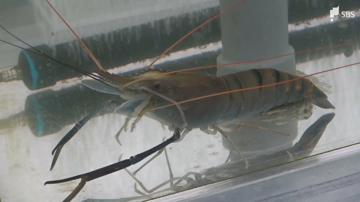 体長が30センチぐらいまで成長するオニテナガエビ。自動車部品などを販売する東邦自動車(本社・大阪市)が2025年8月、新規事業として、南伊豆町で陸上養殖を開始しました。