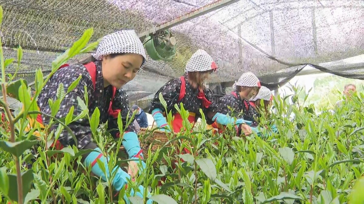2025年の新茶初取引で、最高値を付けた「高嶺の香」の手摘みが2026年4月17日、静岡市清水区で行われました。