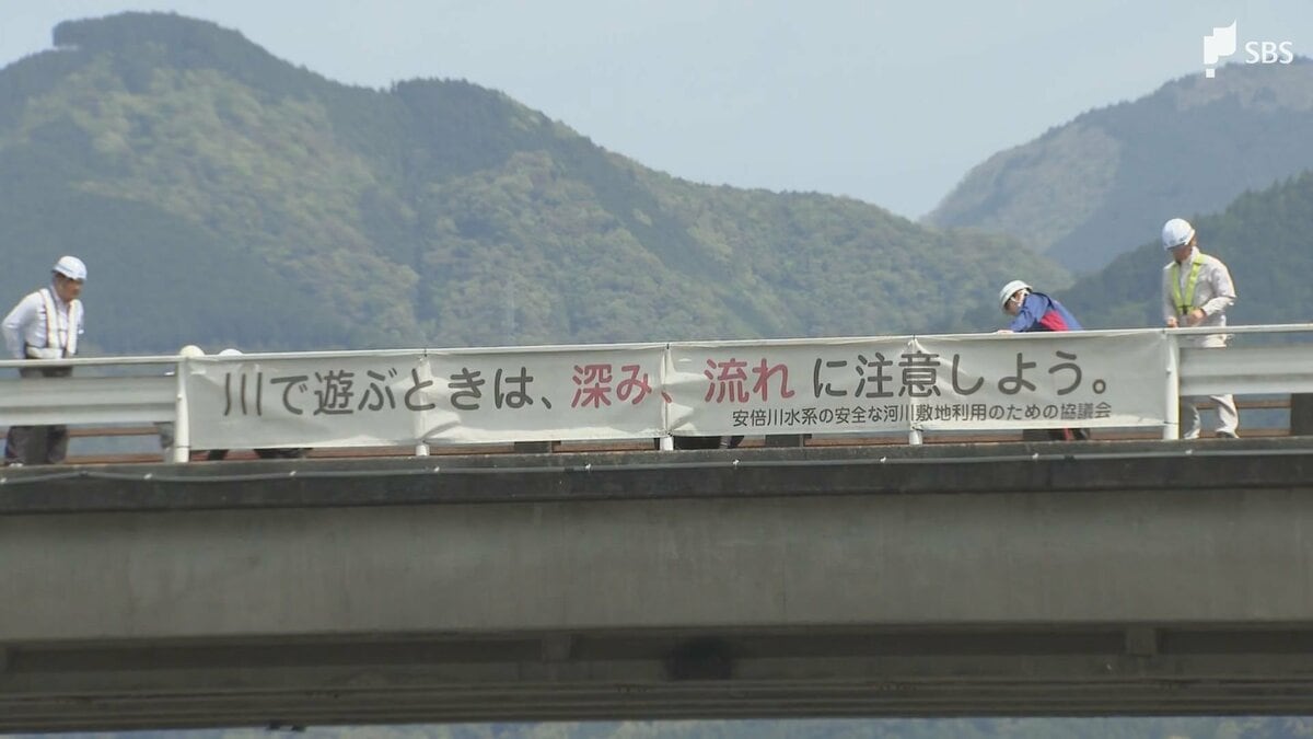 大型連休を前に川遊びの事故について注意を呼びかけようと4月17日、静岡市の橋に水難事故防止の横断幕が設置されました。