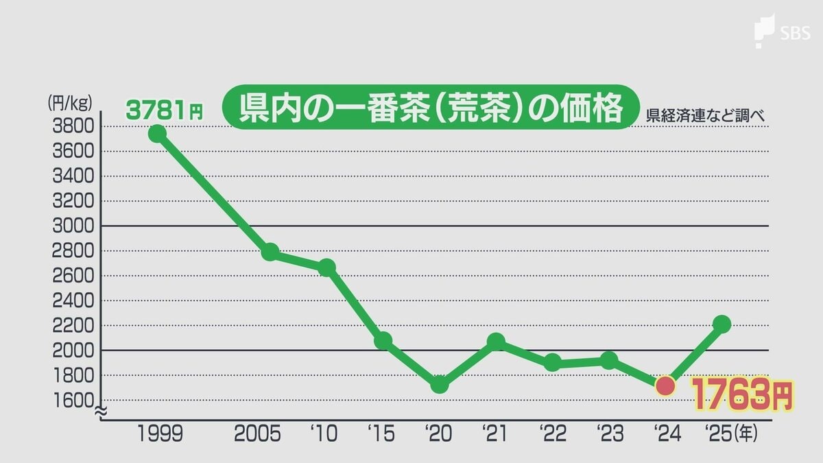 その狙いは価格の上昇です。県内の一番茶の価格は、若者の“急須離れ”などを理由に、1999年に過去最高値をつけて以降、2024年まで下落傾向が続いていました。