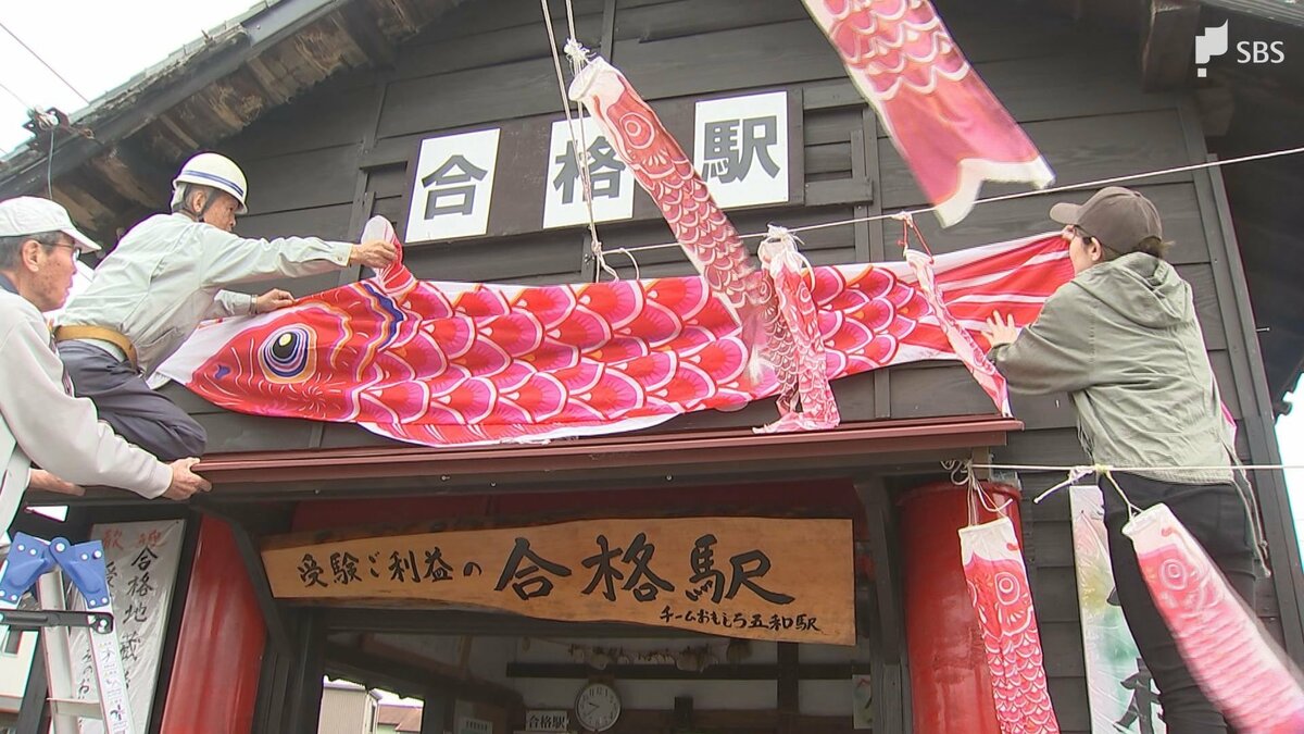 合格駅のこいのぼりは、5月中旬まで楽しむことができます。