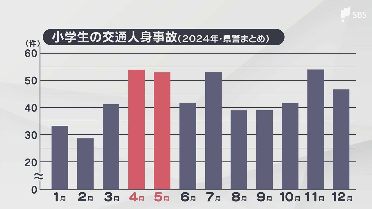県警のまとめでは、小学生の交通人身事故は4月から5月にかけて増加する傾向があります。