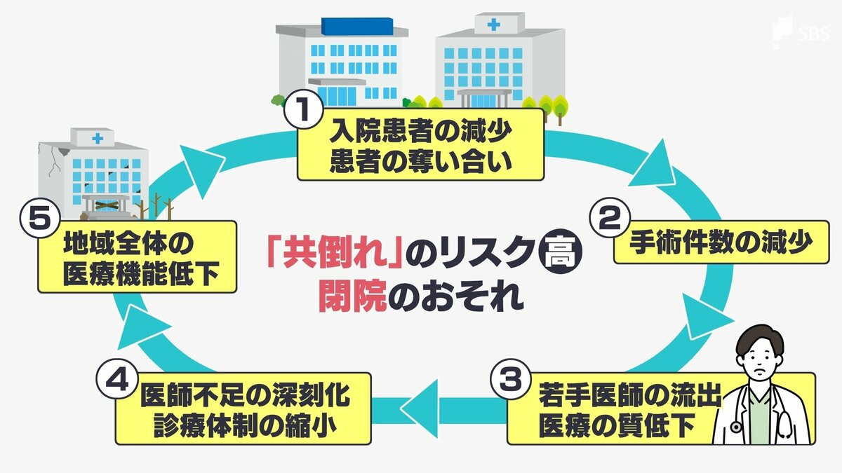 「2つの病院が両方とも自分の方を存続させようと思って頑張ると共倒れになるので。医師の確保数であるとか、そういうことも考慮すると、こういう形が一番望ましいんじゃないか」